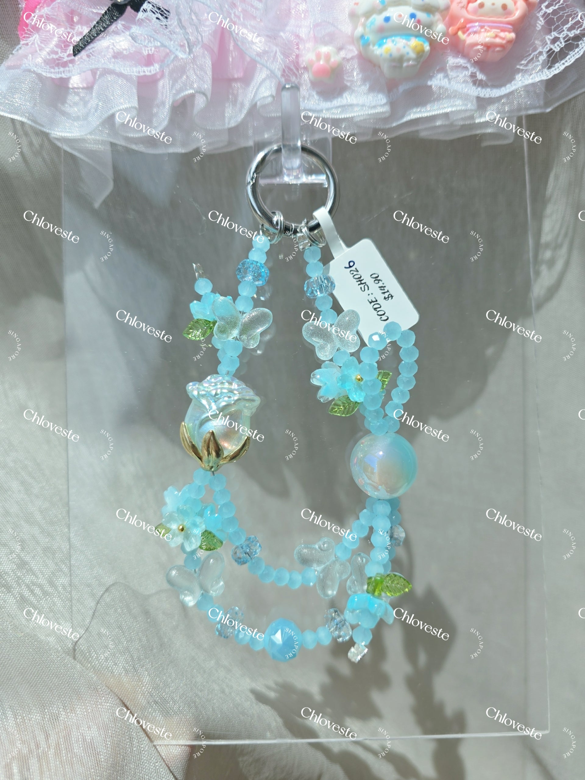 (SH026) Blue Rose and butterfly phone strap